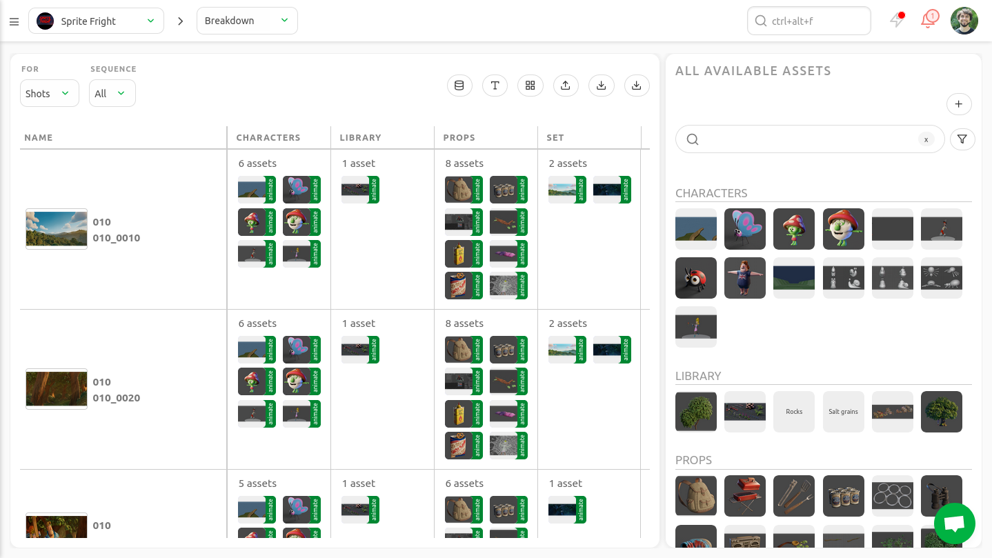 Create breakdowns and access casting information from anywhere. Add as many asset occurrences as needed and record relevant metadata. This way, you'll know when your shots are ready to be built.
